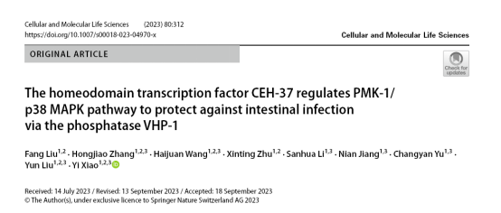 为第一单位在国际知名期刊《Cellular and Molecular Life Sciences》(IF:8.0,中科院1区Top期刊)在线发表了题为“The homeodomain transcription factor CEH-37 regulates PMK-1/p38 MAPK pathway to protect against intestinal infectionvia the phosphatase VHP-1”的研究论文。色情a片