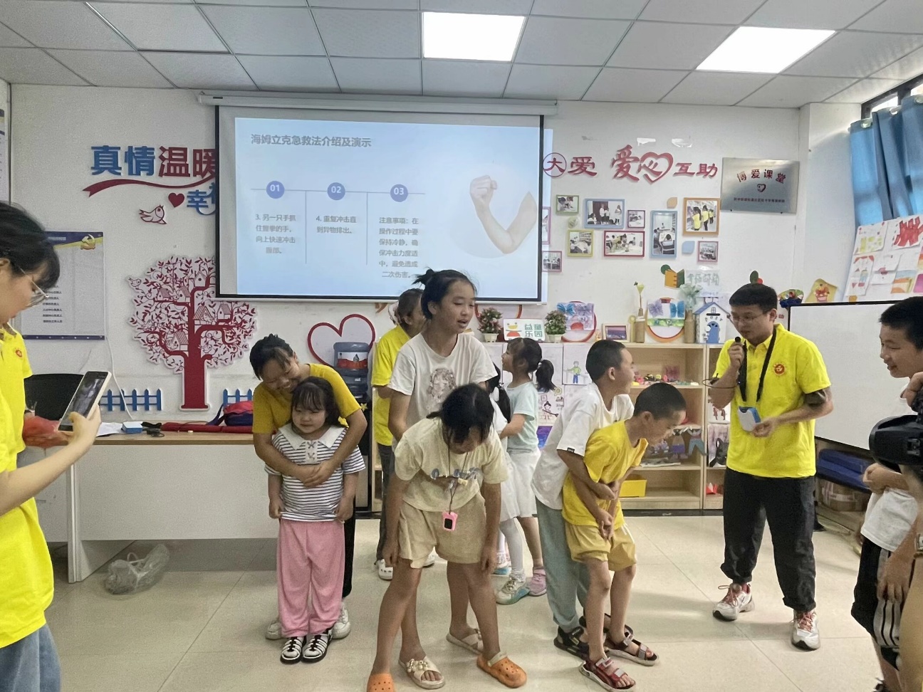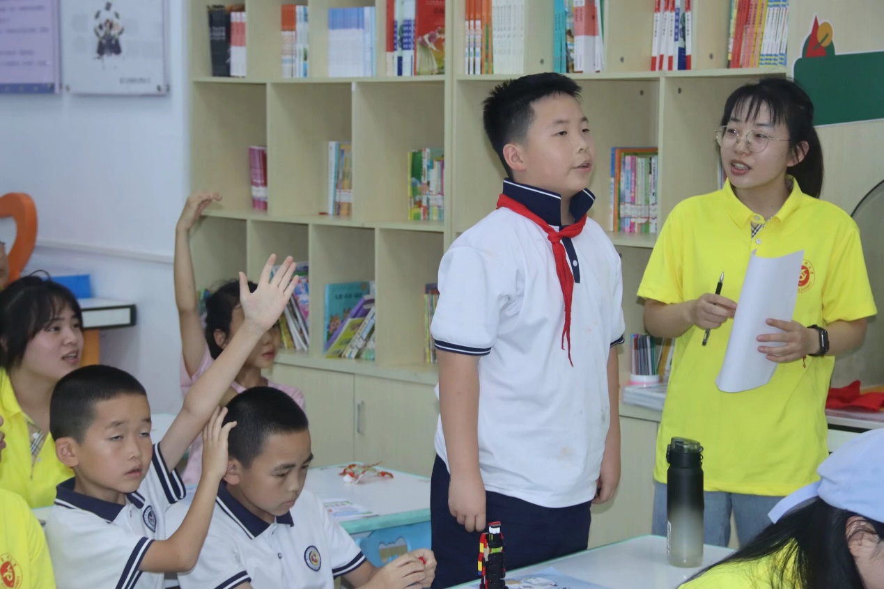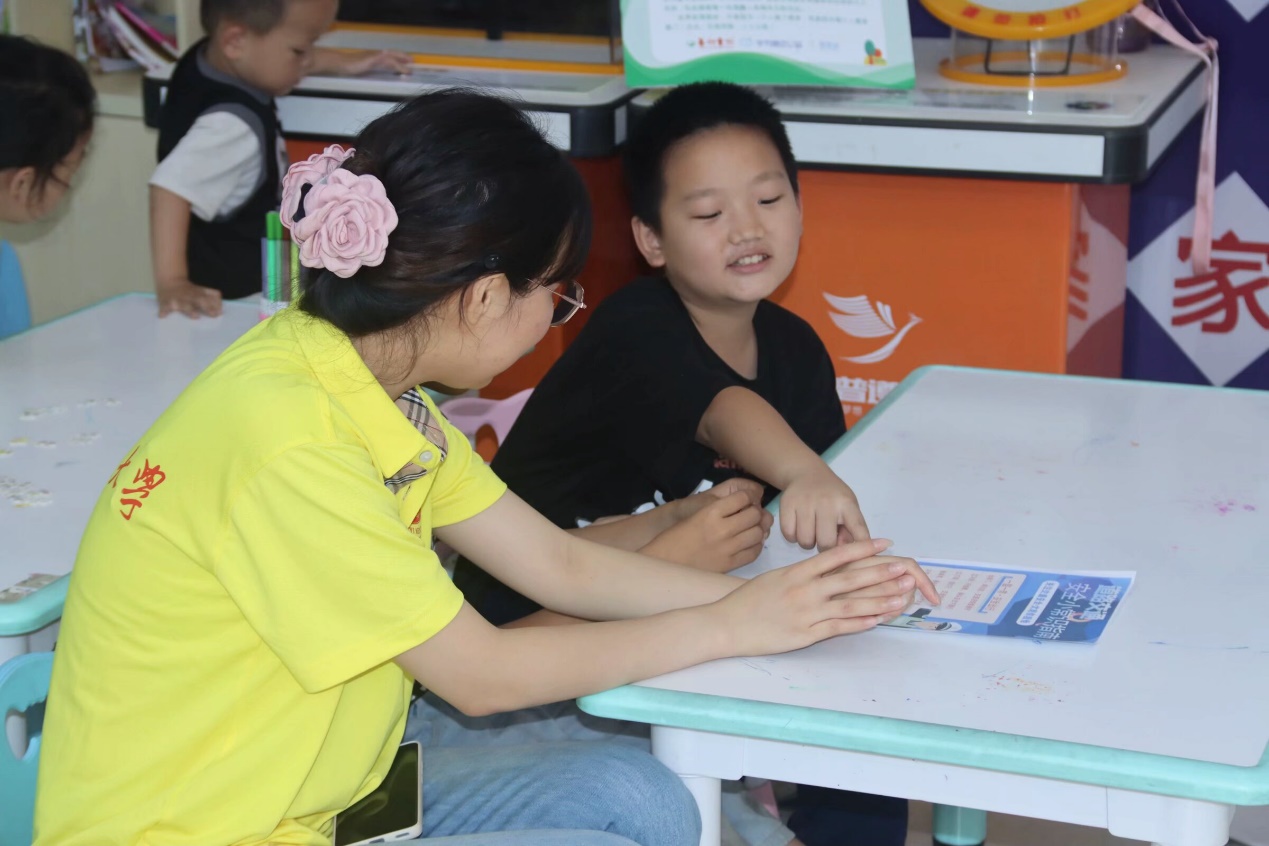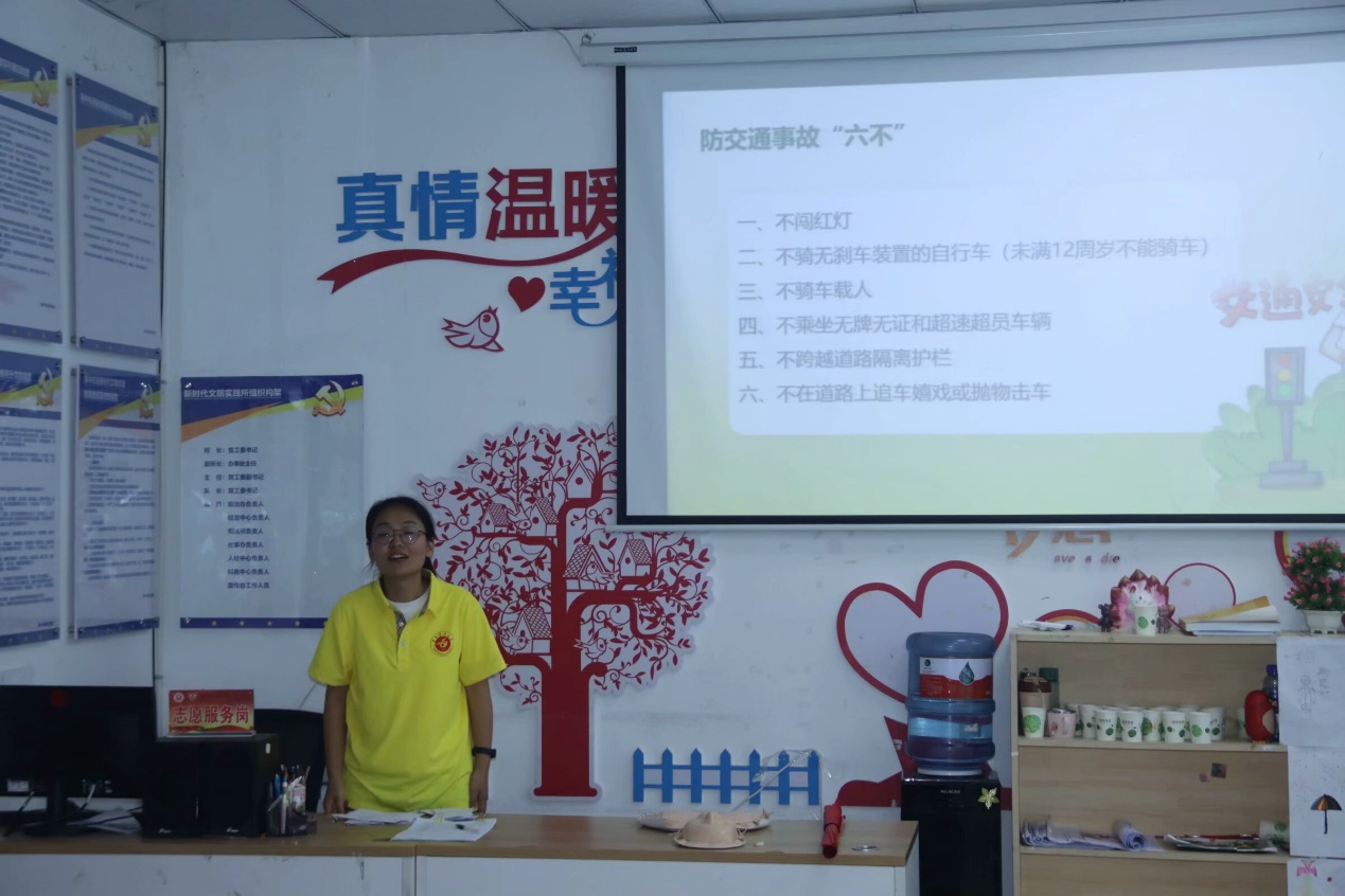 “五防”教育和急救知识科普 出征仪式结束后,队员们来到松源社区。暑期来临,对社区儿童进行“五防”教育和应急救护知识科普尤为重要。实践队员们结合专业所学,通过知识宣讲、案例分享、知识问答、组队练习等多种形式对社区儿童开展防溺水、交通安全教育、应急救护技能培训、防拐卖与诈骗、常见寄生虫疾病、防性侵等五防教育系列活动,在陪伴中引导孩子们形成初步的认知。