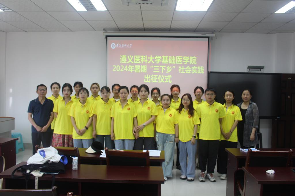 会议室举行。学院党委书记罗军敏、党委副书记袁晓锋、学生党支部副书记陈莉、辅导员郭贝及实践队全体队员参加,仪式由陈莉老师主持。罗军敏书记对实践队员提出三点要求:一是关爱陪伴社区儿童,积极了解社区,了解红色文化,能够在此次实践中有所收获,二是注意安全、遵守纪律、服从管理,三是深入基层、深入实践,展现遵医学子风采,践行青年人的青春誓言;袁晓锋副书记指出松源社区是遵义市唯一的一个易地扶贫搬迁跨县安置点,希望同学们能够珍惜此次机会,在实践中学习,在实践中成长;郭贝老师介绍了此次实践队组队情况;刘浩如同学代表实践队员发言,号召同学们展现风采,砥砺前行。