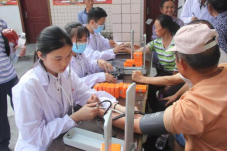 “科普遵YI”为青龙村中老年人测血压、为青少年测脊柱侧弯