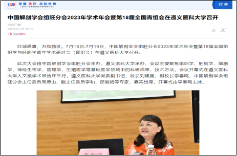 2023年7月16日-7月19日,中国解剖学会组胚分会2023年学术年会暨第18届全国组织学与胚胎学青年学术研讨会(青组会)在色情a片