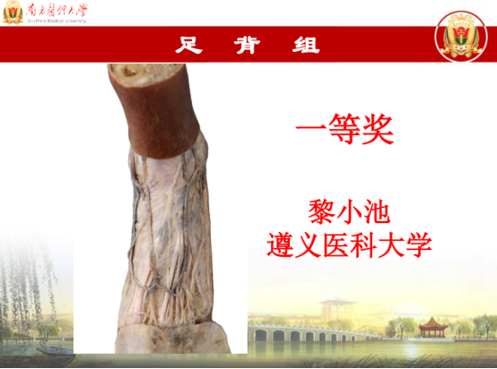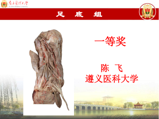 本次大赛,南方医科大学、广州医科大学、福建医科大学、香港中文大学(深圳)、宁夏医科大学、安徽医科大学、广西医科大学、新疆医科大学等院校共计42名选手进行同台竞技,比赛分足底和足背两个赛组,设一等奖1项,二等奖2项,三等奖3项。经过历时3个小时的激烈角逐,我院2位技术员制作的标本得到现场专家评委的一致好评,评委们一致认为制作的标本层次分明,结构暴露完整且清晰,操作界面整洁干净,彰显出学校人体解剖学技术员训练有素及扎实的基本功。