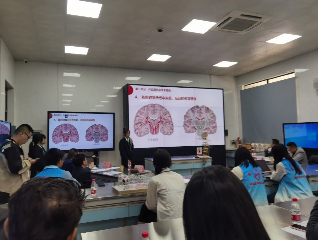 参赛的三支本科团队学生组在比赛中发挥出色,同学们思路敏捷,条理清晰地在规定时间内阐述团队的《神经传导通路》、《锥体外系环路》和《胚胎发育动态模型》设计思路,设计方法,设计材料及设计理念,得到与会专家和同学的高度赞扬,最终三组团队在本次教学模型创新设计大赛获得一等奖1项、三等奖2项。通过参赛,检验了教研室在学生培养上取得的成效,彰显了同学们扎实的专业知识及创新能力,同时也给同学们提供了很好的学习锻炼机会。