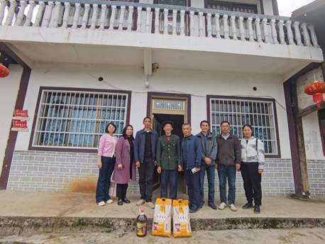 活动首先由学院教工第七党支部书记金寰领学习近平在中共中央政治局第十一次集体学习时强调“加快发展新质生产力,扎实推进高质量发展”和在参加江苏代表团时重要讲话精神——“因地制宜发展新质生产力。后是龙江村党支部第一书记孔德营领学贵州省委2024年一号文件——中共贵州省委,贵州省人民政府关于学习运用“千万工程”经验 加快“四在农家·和美乡村”建设推进乡村全面振兴的实施意见。接下来,龙江村支部书记冯科介绍龙江村近年来脱贫攻坚的成果和过去一年来乡村振兴的成效,本校驻村干部孔德营也介绍了驻村后开展的工作。随后双方就工作中如何发展新质生产力、产业发展、乡村振兴、驻村干部如何更好发挥作用等事项进行深入交流。最后共建支部对龙江村老党员、困难党员进行走访,了解他们的身体状况、生活情况并进行慰问。
