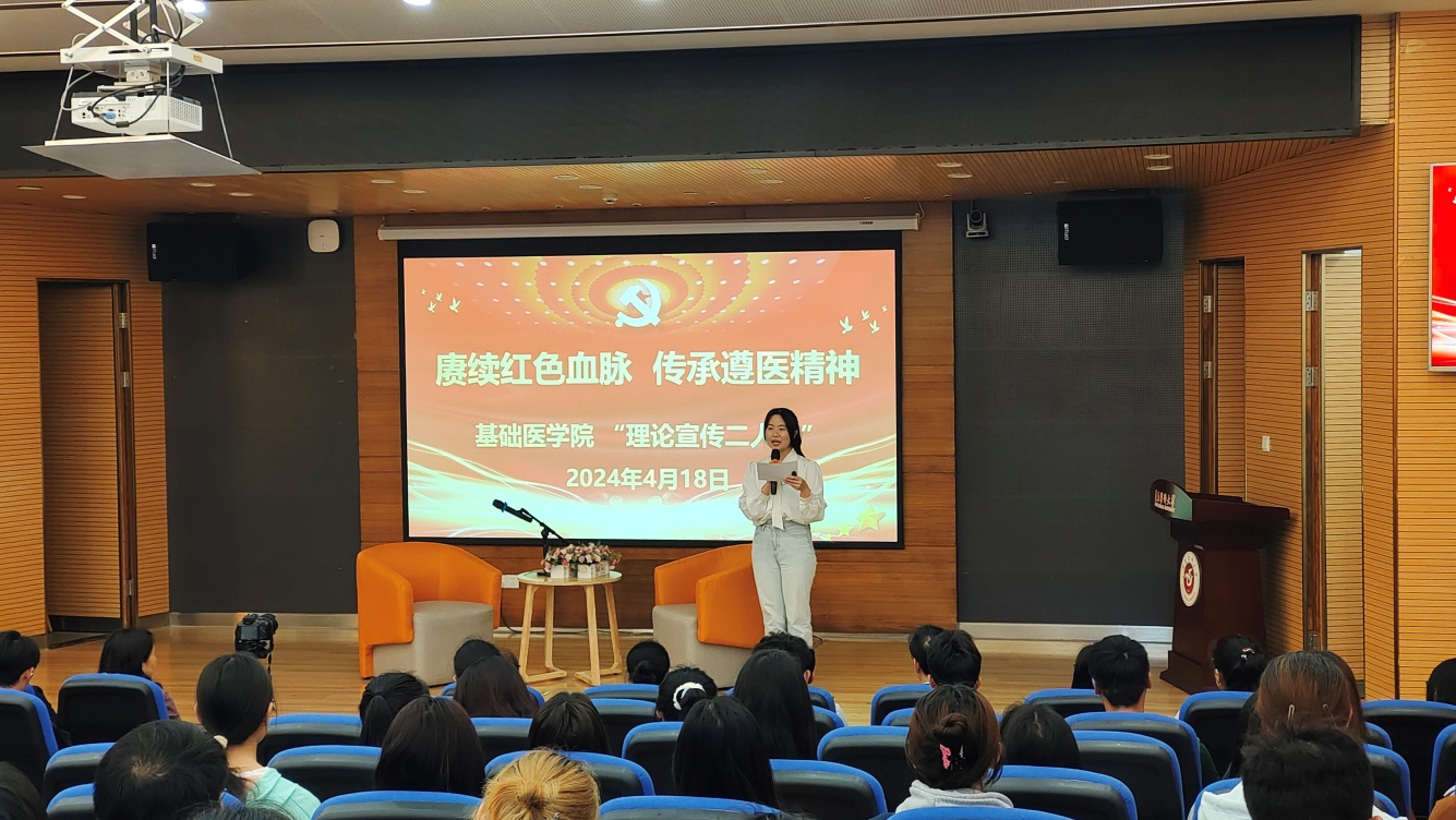 本次活动,通过“1+1”二人互动式宣讲,坚持讲理论与讲实践相结合、讲道理与讲故事相结合,把“大道理”转化为生动的“小故事”,聚焦红色遵医历史传承和优良传统,进一步深化师生们对遵医精神的认识,引导师生赓续红色血脉,传承遵医精神,凝聚起推动学校高质量发展的强大精神力量,把学习成果转化为广大师生奋进新征程、建功新时代的实际行动。