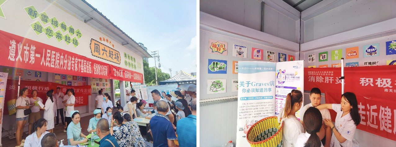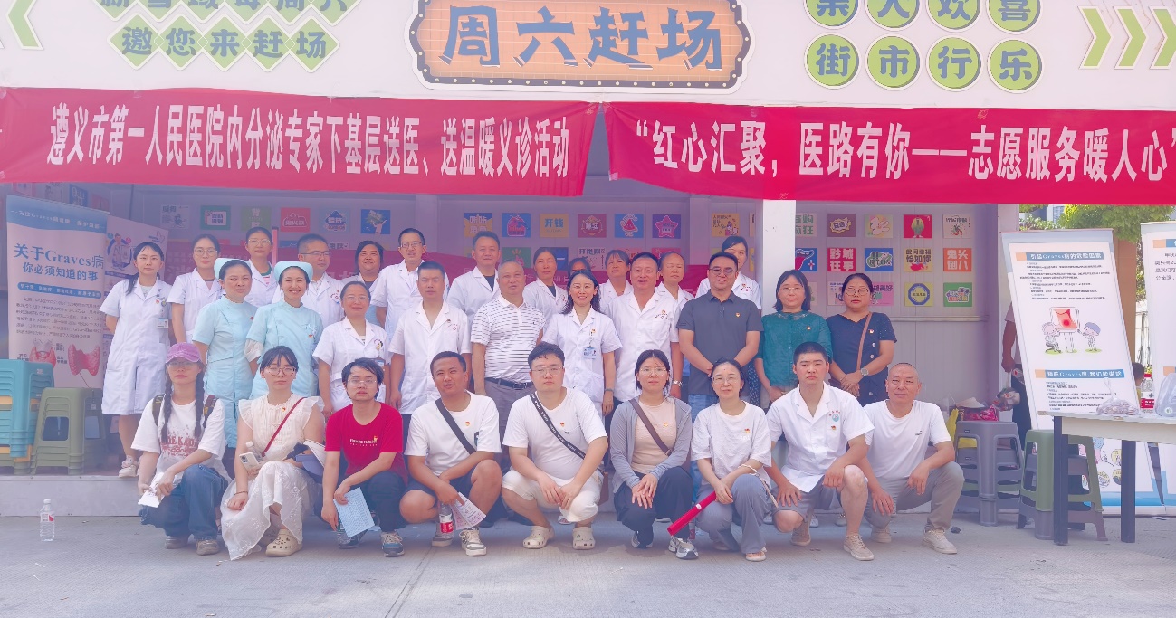 免疫学教研室于红松教授及其科研团队携手第三附属医院内分泌科及红花岗区南关街道社区卫生服务中心,在新雪域成功举办了以"红心汇聚,医路有你"为主题的健康科普与义诊活动,旨在深化公众对内分泌甲状腺疾病的认识,普及关键健康知识。