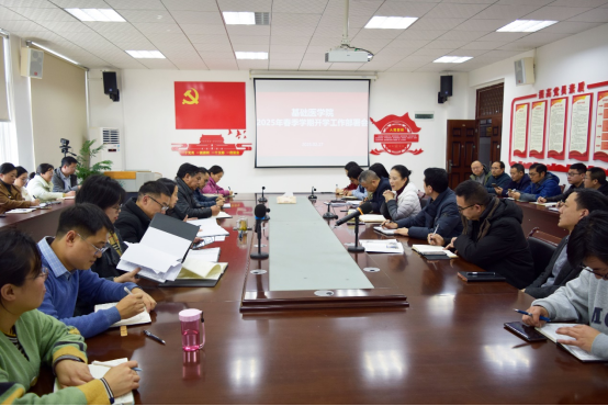 在1-411会议室召开2025年春季学期工作部署会议。学院党政班子成员、各科室负责人及基层党支部书记参会。会议由学院副院长刘晖主持。
