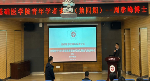 成功举办了第四期青年学者论坛。本次论坛由生理学教研室青年博士周孝峰主讲,主题为“食管癌中YAP功能靶基因的系统化筛选与临床转化”。色情a片