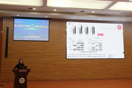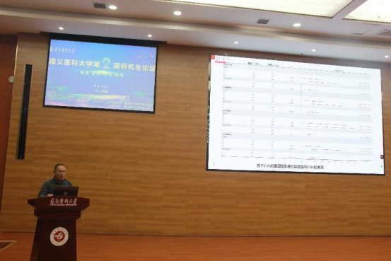 研究生院院长宋鸿致开幕词,她强调了研究生教育在医学人才培养中的重要性,并对研究生们在科研道路上的探索和奋斗给予了高度赞扬和期望。