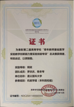 自9月份大赛启动以来,学院高度重视,人体解剖学教研室、组织胚胎学教研室和机能学实验室精心组织、广泛宣传、积极动员,选拔出6名青年教师组成三支队伍参赛。各队提交的实验设计教案顺利通过初赛选拔,并成功晋级进入全国决赛。