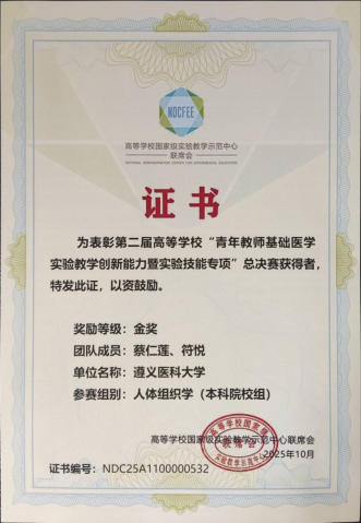 派出的3支参赛队伍均载誉而归,其中人体解剖学和人体组织学两组荣获大赛金奖,机能学组获得铜奖。