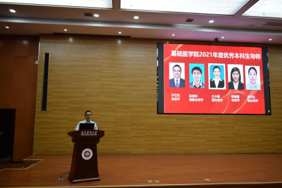 优秀本科生导师获奖名单,学院领导为获奖老师颁奖并合影留念。优秀导师代表徐德林老师从“啥不同、学什么、怎么做”三方面,引导同学们树立理想、建立信心、热爱专业、夯实基础、勇于实践、学以致用、拓宽视野,放眼未来,努力成为服务国家社会需求,实现自我人生价值的优秀人才。
